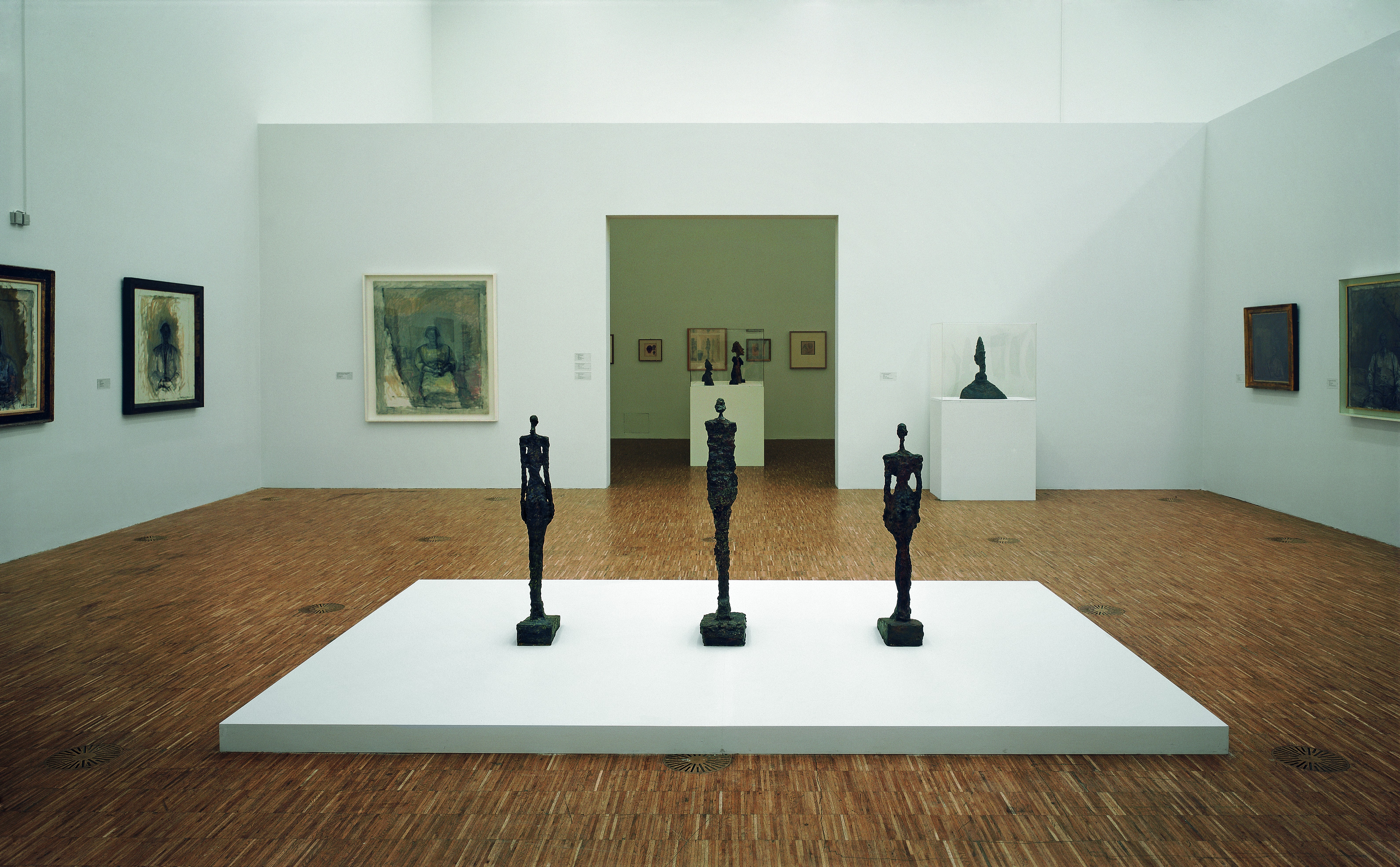 Mit dieser umfassenden Retrospektive zu Alberto Giacometti (geb. 1901, Stampa, Schweiz – gest. 1966, Chur, Schweiz) wurde die Präsentationsreihe zur Kunst der klassischen Moderne fortgesetzt. In der Werkschau ging es weniger um die Inszenierung einzelner Werke oder die chronologische Abfolge von Werkphasen, sondern um die Thematisierung sich überkreuzender Verbindungslinien und dialogischer Bezüge. Giacomettis geradezu obsessive Suche nach der Darstellbarkeit des menschlichen Wesens im Bild wird durch die in viele Schichten angelegten Bildnisse wohl am eindrücklichsten dokumentiert. Zahlreiche öffentliche Sammlungen sowie private Leihgeber unterstützten die Ausstellung, die neben bekannten plastischen und malerischen Hauptwerken auch einige bislang noch nicht gezeigte Arbeiten des Künstlers präsentierte.