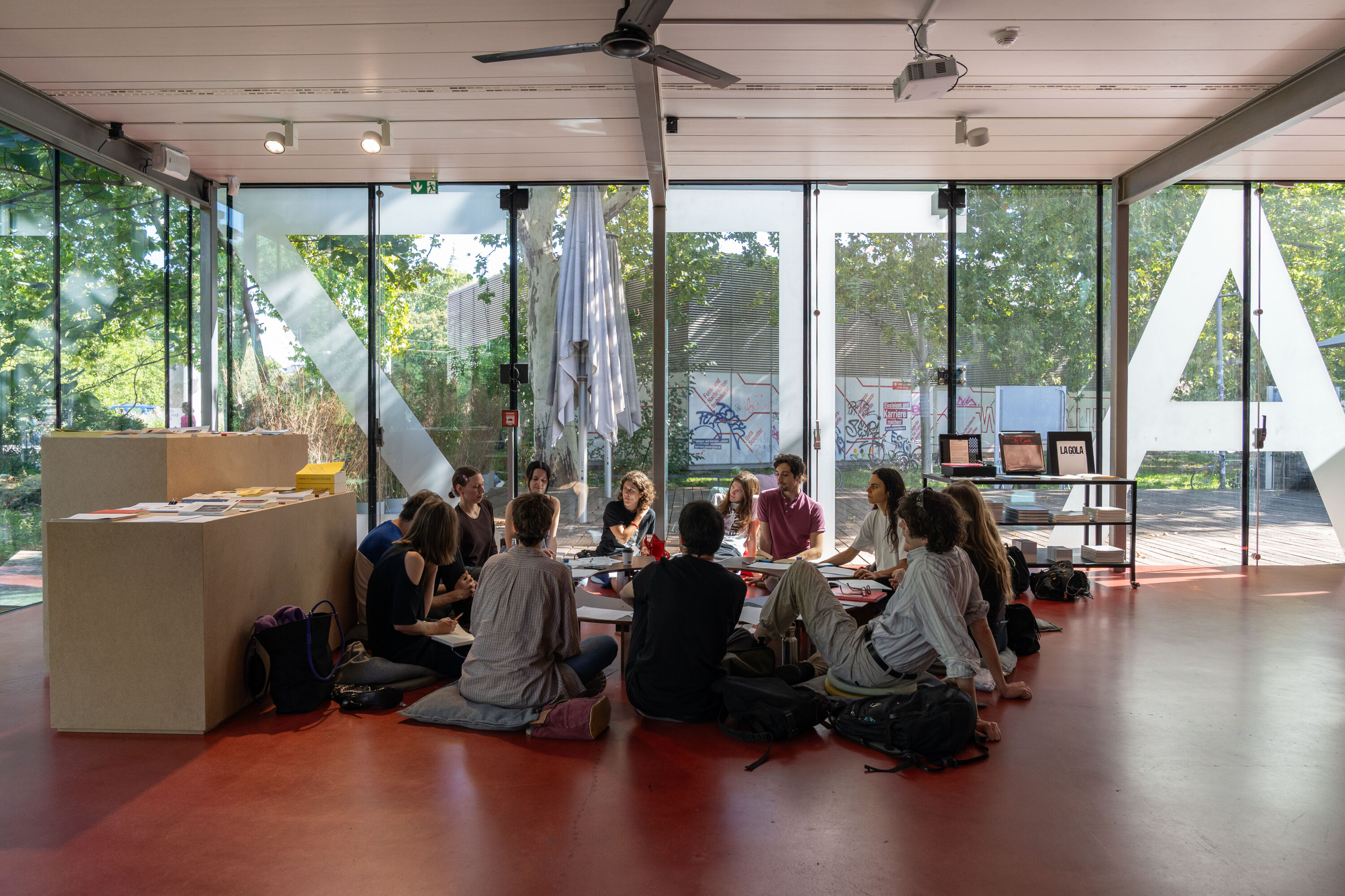 Künstler*innen, die Text in ihren Arbeiten verwenden, wurden eingeladen, die Ausstellung als Produktions- und Experimentierraum zu nutzen. Ein vom Künstler Ian Waelder in Absprache mit den Künstler*innen, der Kuratorin und der Institution speziell konzipiertes Display bildet eine interaktionsbereite Kulisse sowie einen Ort der Referenz und Begegnung.