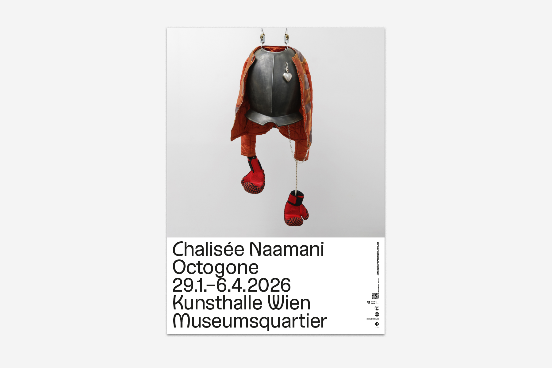 Die Kunsthalle Wien präsentiert die erste Einzelausstellung außerhalb Frankreichs der französisch-iranischen Künstlerin Chalisée Naamani (geb. 1995, Paris). Unter dem Titel Octogone vereint die Ausstellung eine Reihe aktueller Skulpturen, Drucke und Textilarbeiten mit eigens für die Ausstellung geschaffenen Neuproduktionen. Naamani bezeichnet ihre Skulpturen als „Bildgewänder“: Durch einen Prozess der Überlagerung und Collage von Bildern, Stoffen und Texten unterschiedlicher Provenienzen schafft sie skulpturale Arbeiten, die häufig an Kleidungsstücke erinnern oder auf die Geschichte der Mode rekurrieren, aber nie zum tatsächlichen Tragen intendiert sind. Stattdessen versteht die Künstlerin Mode als grundsätzlich politisch und zeigt durch ihre Reflexion des Bereichs der angewandten Künste, wie Fragen von Form, Funktion und Ästhetik mit Macht und kultureller Bedeutung verknüpft sind. Die Vielzahl an Quellen und Referenzen, derer die Künstlerin sich hierbei bedient, umfassen die ornamentalen Traditionen innerhalb der dekorativen und bildenden Kunst, persische und christliche Ikonografien, Zitate aus der Populär- und Internetkultur, aber auch persönliche Fotografien und Archivmaterialien.