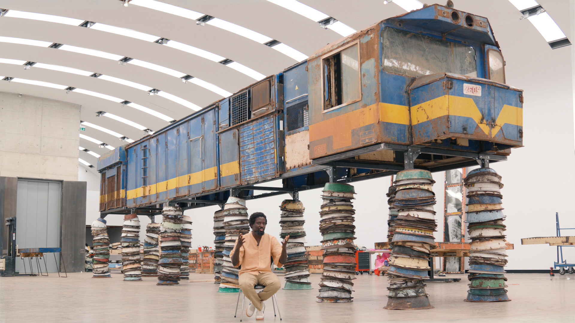 Zentrales Element der Ausstellung ist die Verwirklichung eines langjährigen Vorhabens: Dekonstruktion, Transport und Präsentation einer Diesellokomotive in Originalgröße in Kombination mit einer Vielzahl von emaillierter Eisengefäße – sogenannte „headpans“ –, die als Trägerkonstruktion für die Lokomotive dienen. Diese „headpans“ sind ein gängiges Gefäß, das in Ghana zum Transport von Waren und Materialien verwendet wird. Mahama sammelte Tausende dieser Schüsseln, indem er neue gegen gebrauchte eintauschte. Die beschädigten, verrosteten und verbeulten Objekte zeugen von intensivem Gebrauch. Unter dem Zug gestapelt, tragen sie eine Lokomotive, die als eine andere Art von Gefäß verstanden werden kann.