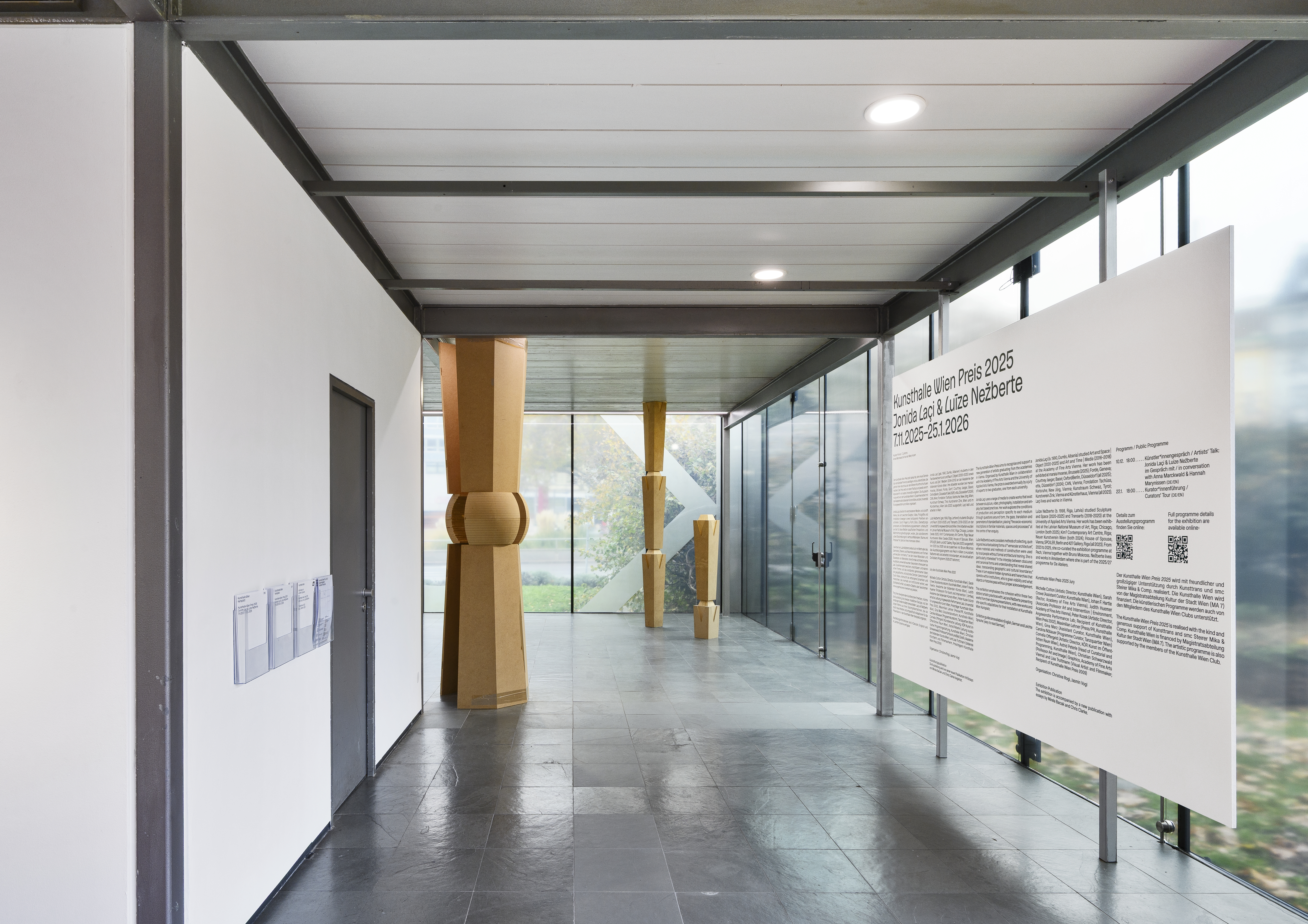 Jonida Laçi (geb. 1990, Durrës, Albanien) und Luīze Nežberte (geb. 1998, Riga, Lettland) wurden mit dem Kunsthalle Wien Preis 2025 ausgezeichnet. Der Preis wurde 2002 ins Leben gerufen und wird in Zusammenarbeit mit der Akademie der bildenden Künste Wien und der Universität für angewandte Kunst Wien organisiert. Die Auszeichnung zielt darauf ab, eine neue Generation von Künstler*innen zu fördern und würdigt jährlich herausragende Diplomarbeiten von Absolvent*innen, die mit unterschiedlichen Medien und Themenbereichen arbeiten. Laçi und Nežberte erhalten eine gemeinsame Ausstellung in der Kunsthalle Wien Karlsplatz mit einem Ausstellungskatalog in deutscher und englischer Sprache sowie ein Preisgeld in Höhe von je € 3.000.