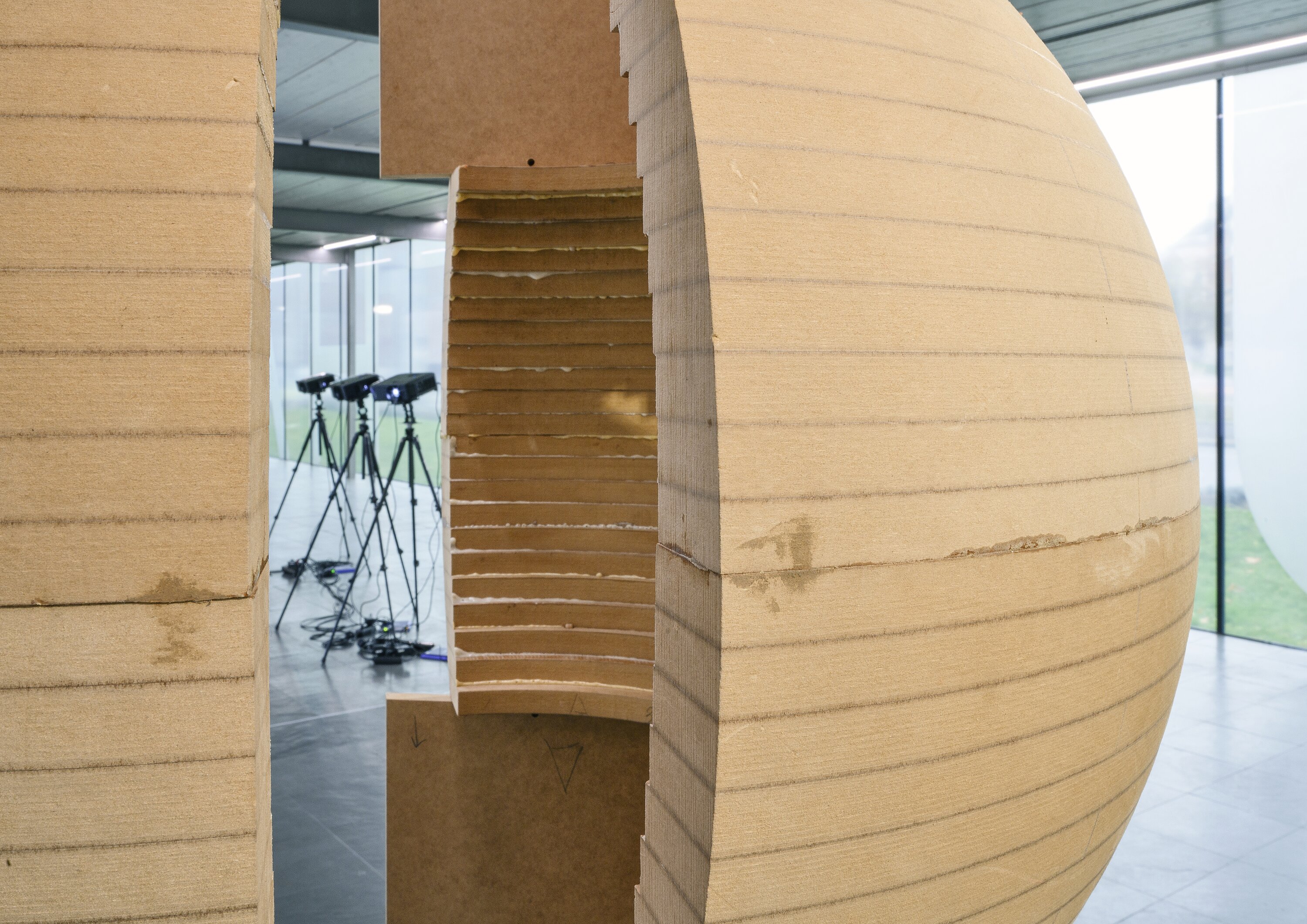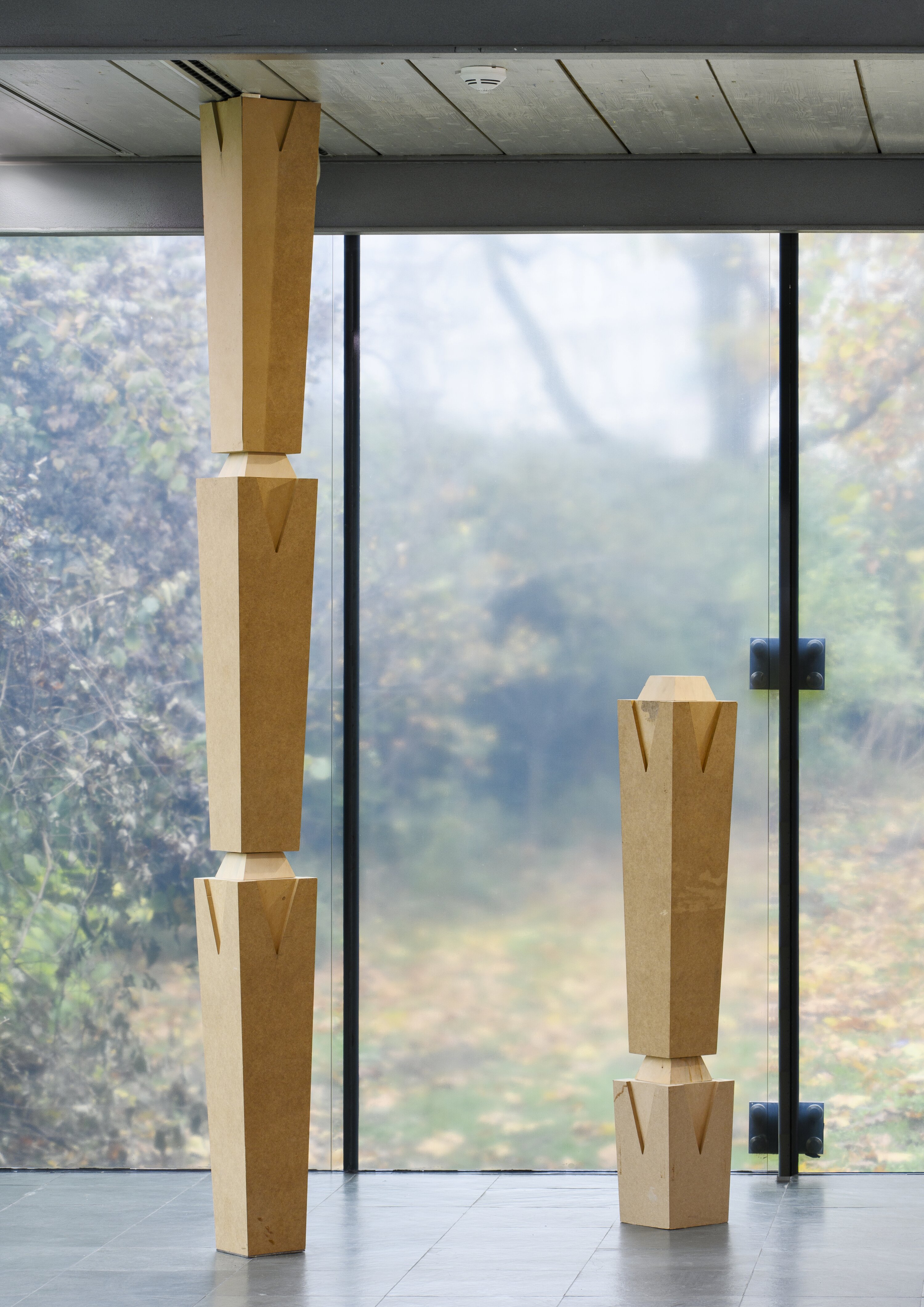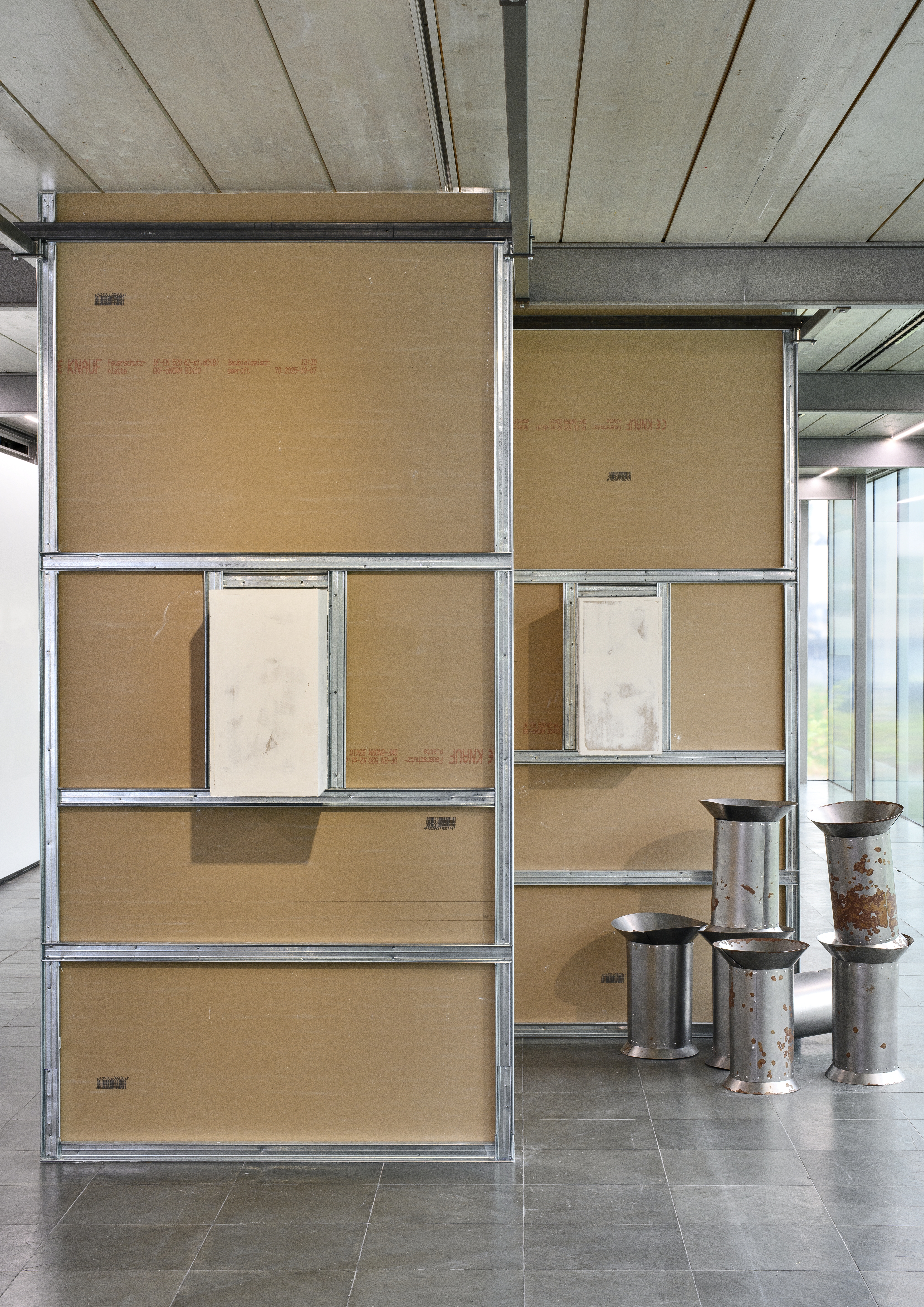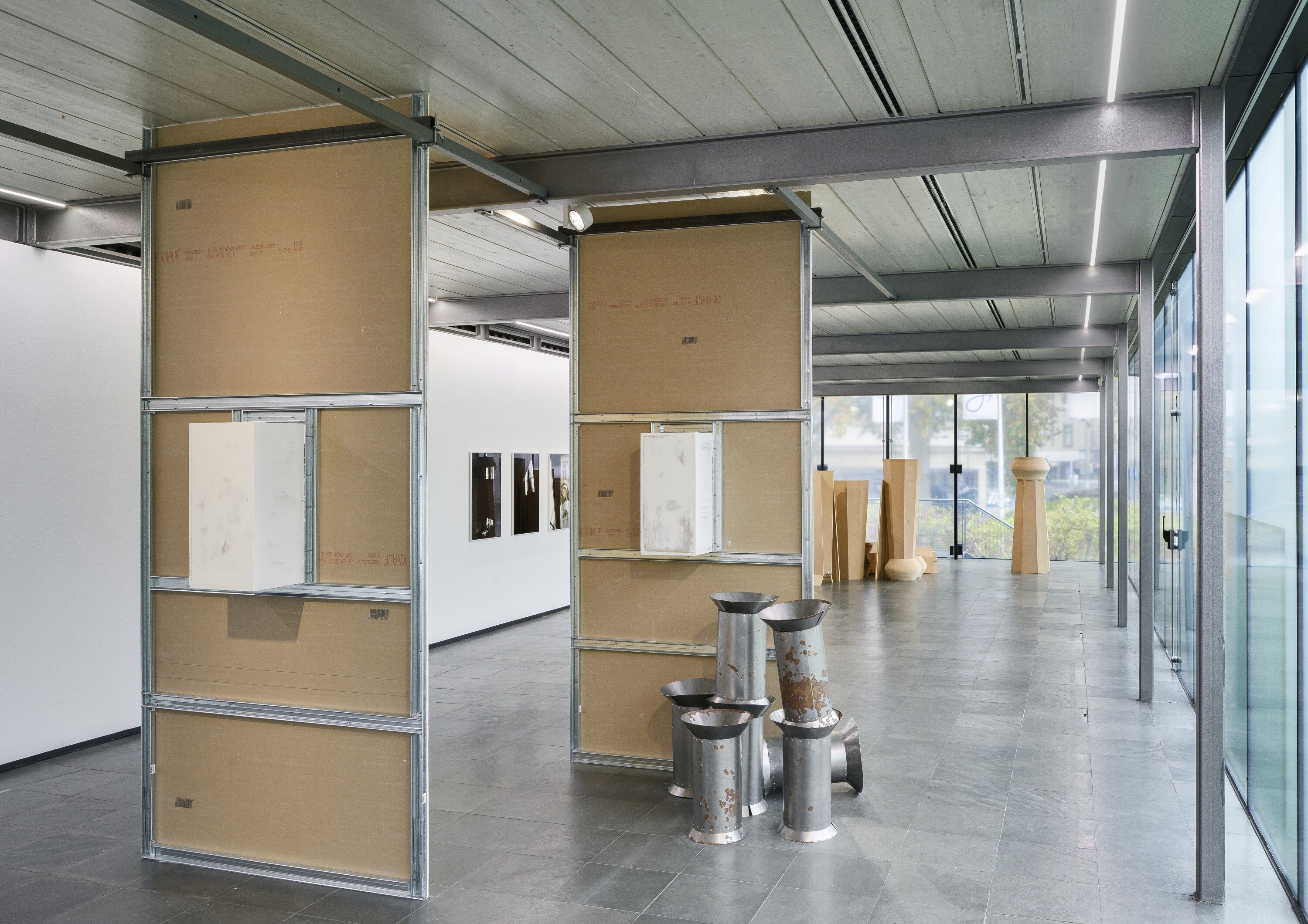 Luīze Nežberte studierte in der Klasse für Skulptur und Raum an der Universität für angewandte Kunst Wien. In ihren Arbeiten beschäftigt sie sich mit Methoden des Sammelns, Zitierens und Rekontextualisierens von Material mittels skulpturaler Arbeiten, wobei sie häufig ausgehend von bestehenden architektonischen Formen arbeitet. Durch die Auseinandersetzung mit persönlicher Erinnerung, volkstümlichen Formen und historischen Erzählungen untersucht sie, welche Übersetzungsprozesse und Neukontextualisierungen von der Übertragung dieser Aspekte in künstlerische Arbeiten innerhalb eines Ausstellungskontextes initiiert werden. Nežbertes Diplompräsentation We could listen much longer, but it is late by now (2025) konzentrierte sich auf skulpturale Neuinterpretationen historischer Architektur, ausgehend von einem Versammlungshaus aus dem frühen 18. Jahrhundert in Gaide, das 1739 von lettischen Anhängern der Mährischen Brüder erbaut wurde. Nežberte reinterpretierte diese Formen als räumliche Installationen. Dabei verwendete sie gängige Baumaterialien wie MDF und Trockenbauwände, um zu untersuchen, wie kulturelles Gedächtnis durch Prozesse der Rekonstruktion und materiellen Transformation verhandelt werden kann.