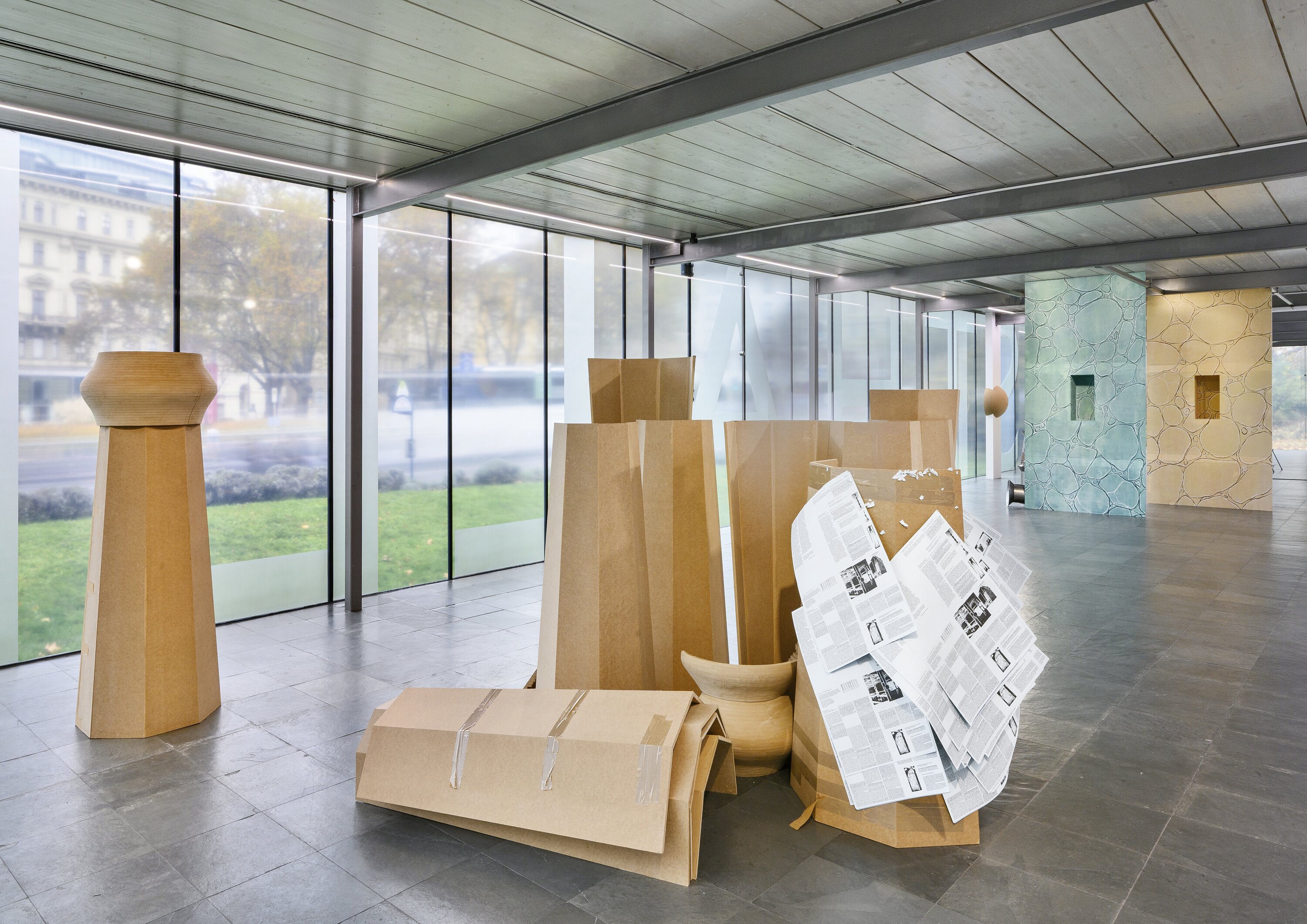 Die Ausstellung präsentiert Versionen der Diplomausstellungen von Laçi und Nežberte mit ortsspezifischen Anpassungen neben neuen Werken. Die beiden unterschiedlichen und autonomen Praktiken der Künstler*innen werden zueinander in Beziehung gesetzt und insbesondere die diversen inhaltlichen Verbindungsmomente der beiden divergierenden Praktiken werden herausgestellt.