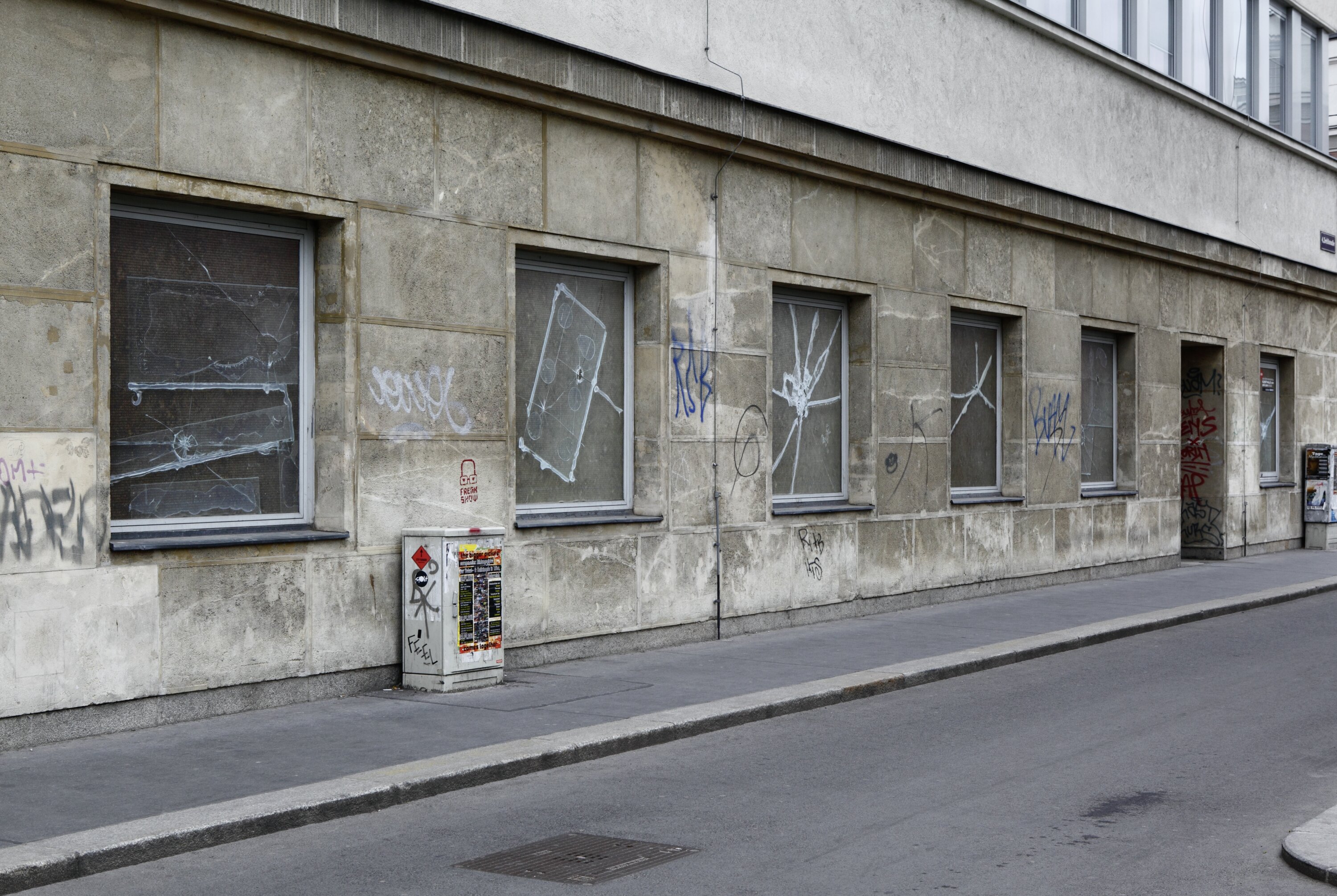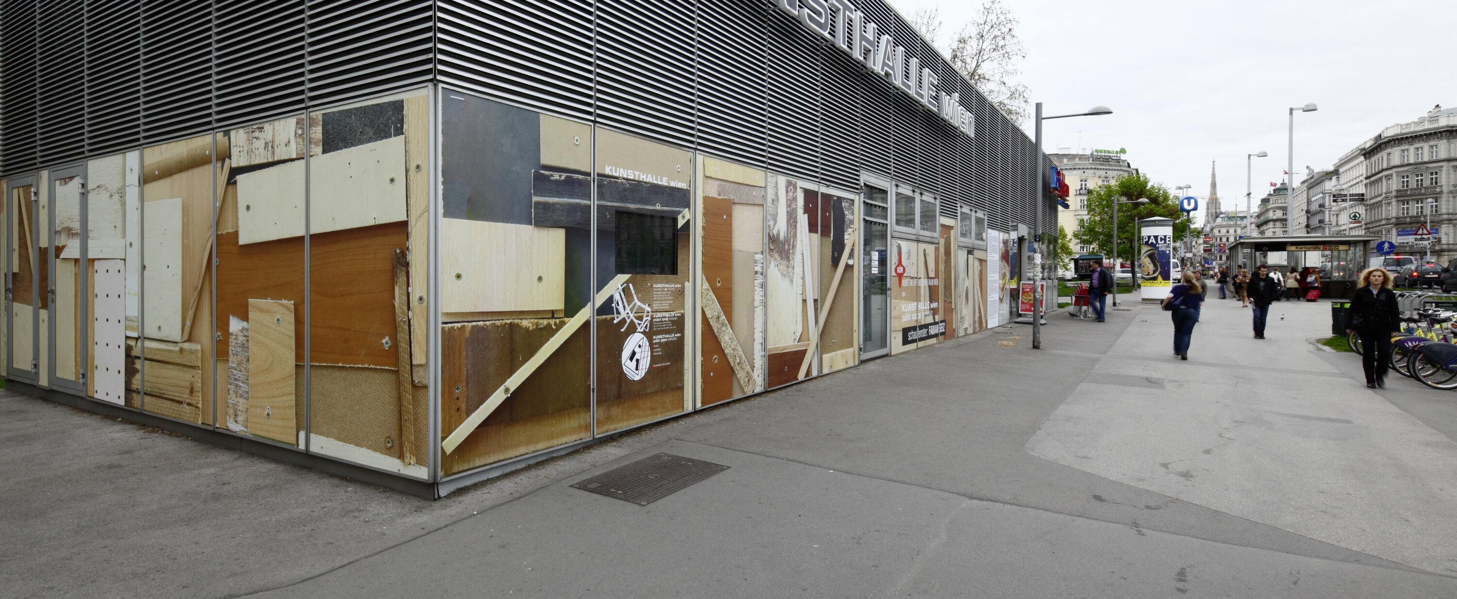 Die am schaufenster KÖR Karlsplatz präsentierten Bretterverschläge sind Fotografien von Modellen, die der Künstler speziell dafür angefertigt hat. Auf „reale“ Größe gebracht, als 1:1 Illusion, transportieren sie die Vorstellung eines Ausnahmezustandes. Sie sollen eine bevorstehende Gewalt – sei es ein gesellschaftspolitisches Ereignis oder eine Naturkatastrophe – suggerieren, wie es der Titel der Arbeit verspricht. Die verlassenen, mit Brettern zugenagelten Häuser – einer Geisterstadt gleich – sind dabei im wahrsten Sinne Symbol für das Erwarten einer kommenden Entladung.