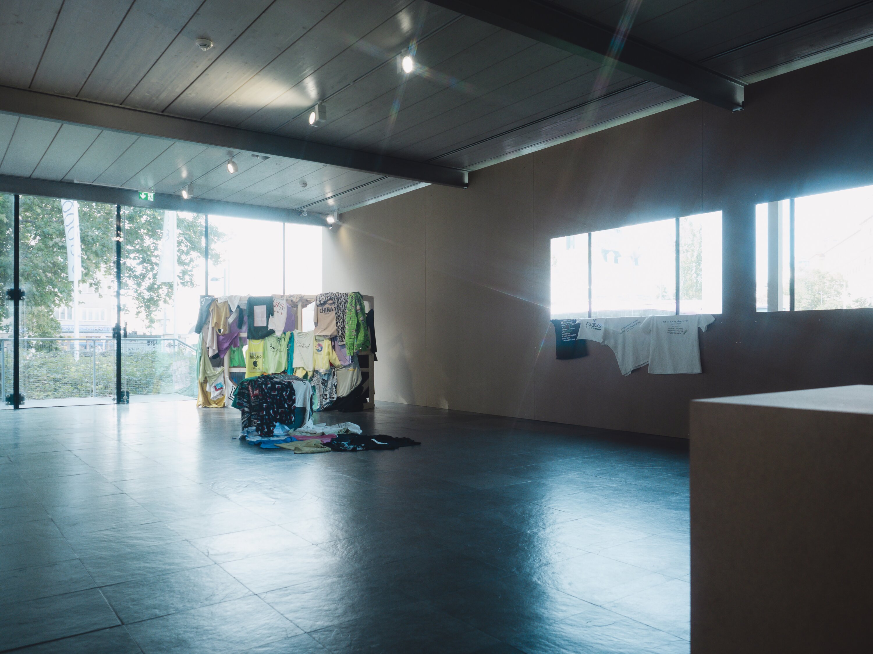The New York-based artist duo Shanzhai Lyric presents a poetry reading with contextualizing research drawn from the words printed on found garments that comprise the installation Incomplete Poem (hedge) (2023). The work features a wooden structure draped in a growing collection of slogan T-shirts – forming an excerpt of what the group considers an ever-unfurling poem. Derived from the Chinese term meaning ‘mountain fortress’, Shanzhai has come to signify counterfeit or imitative production while retaining the subversive spirit of the subcultures that emerge around it.