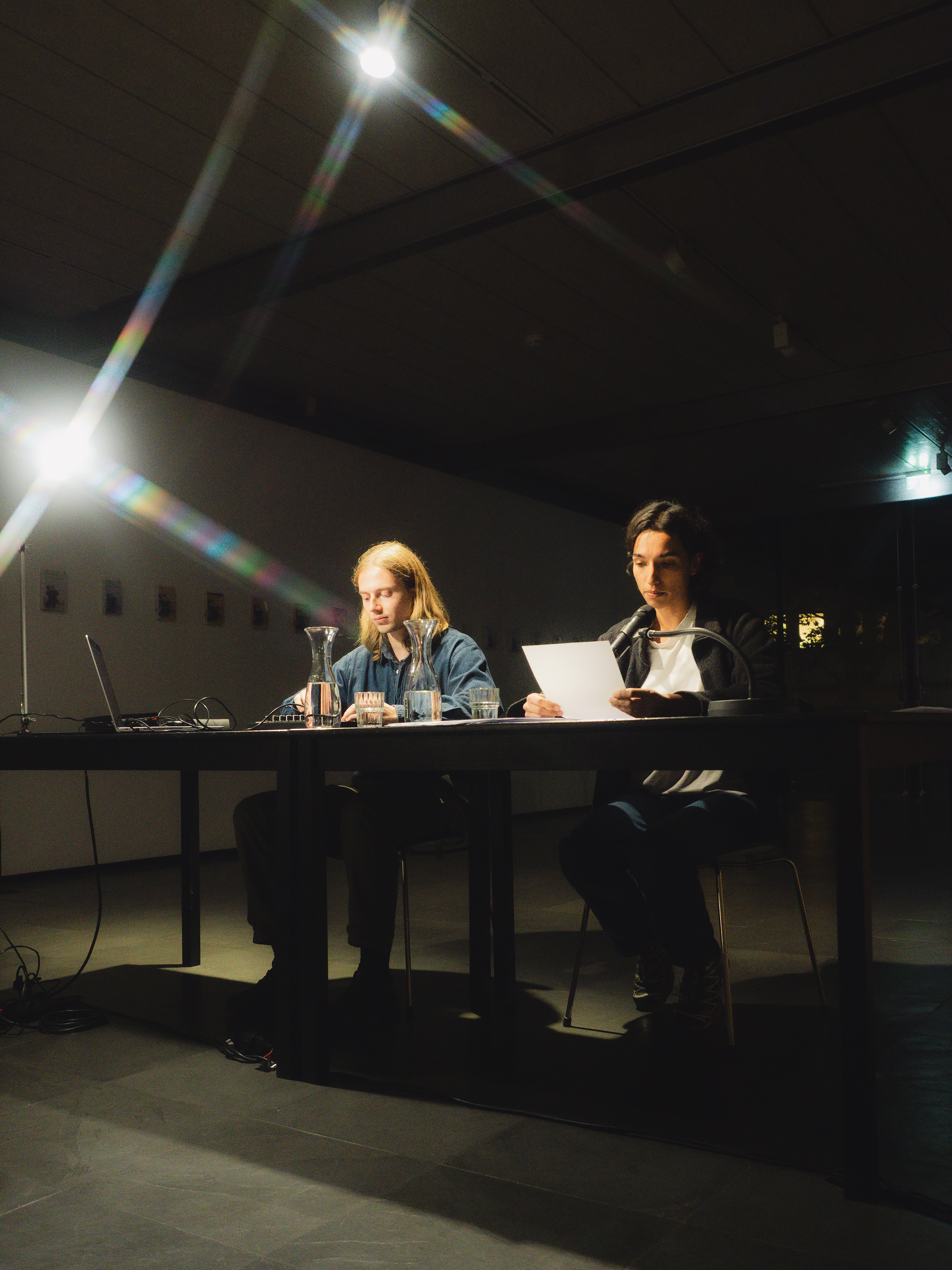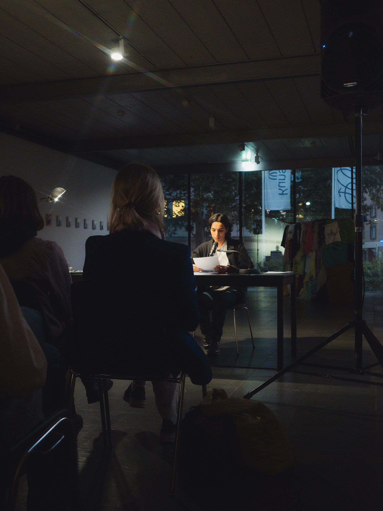 A steady rhythm emerged where novelty might has been expected – suggesting that repetition can carry its own kind of force. The texts reflect on possibility, desire and closure, while also pointing to the foreclosure of imagination shaped by material constraints: limited space, constant work and the pressures of production. This sense of repetition and constraint is mirrored in Stefan Grimus’ looping composition, which accompanies the performance and underscores the cyclical, durational nature of both the writing and reading.