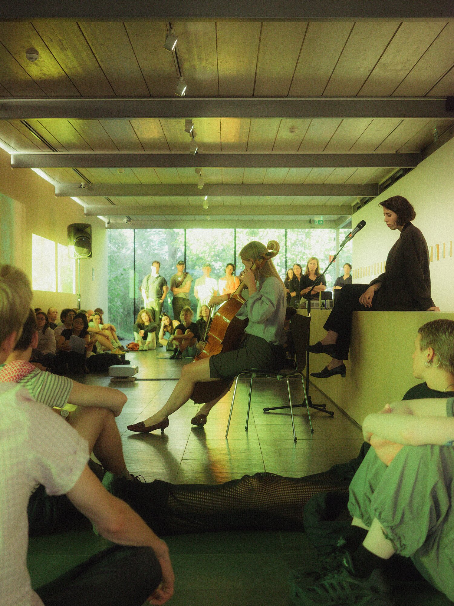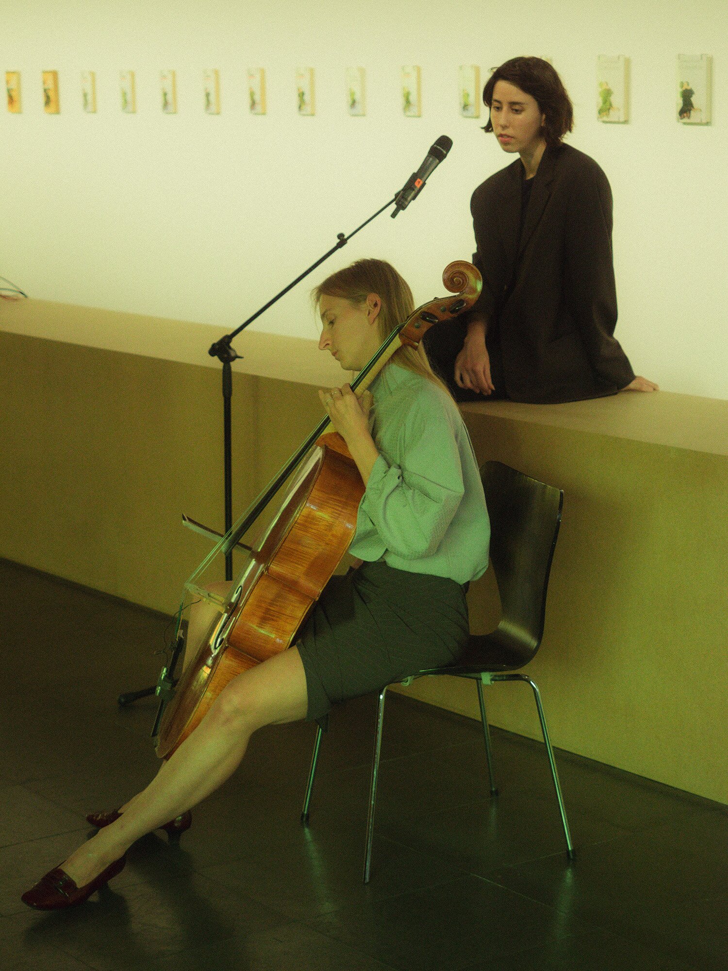 Schmutztitel is a newly conceived performance by Sanna Helena Berger, expanding on the themes of visual dominance, adaptation and authorship introduced in her sculptural installation of the same name. Presented as a monologue accompanied by projected scenes and live music, the work draws from Elfriede Jelinek’s 1983 novel Die Klavierspielerin and Michael Haneke’s 2001 film adaptation La Pianiste.