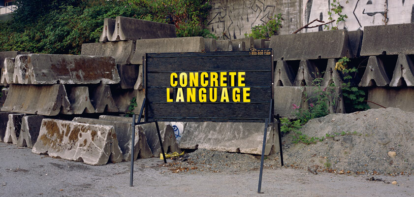 The work of Ron Terada acts as a satellite for the exhibition Béton in public space: a billboard positioned next to Kunsthalle Wien Karlsplatz presenting the text Concrete Language, which questions the function of language as an objective semiotic system.