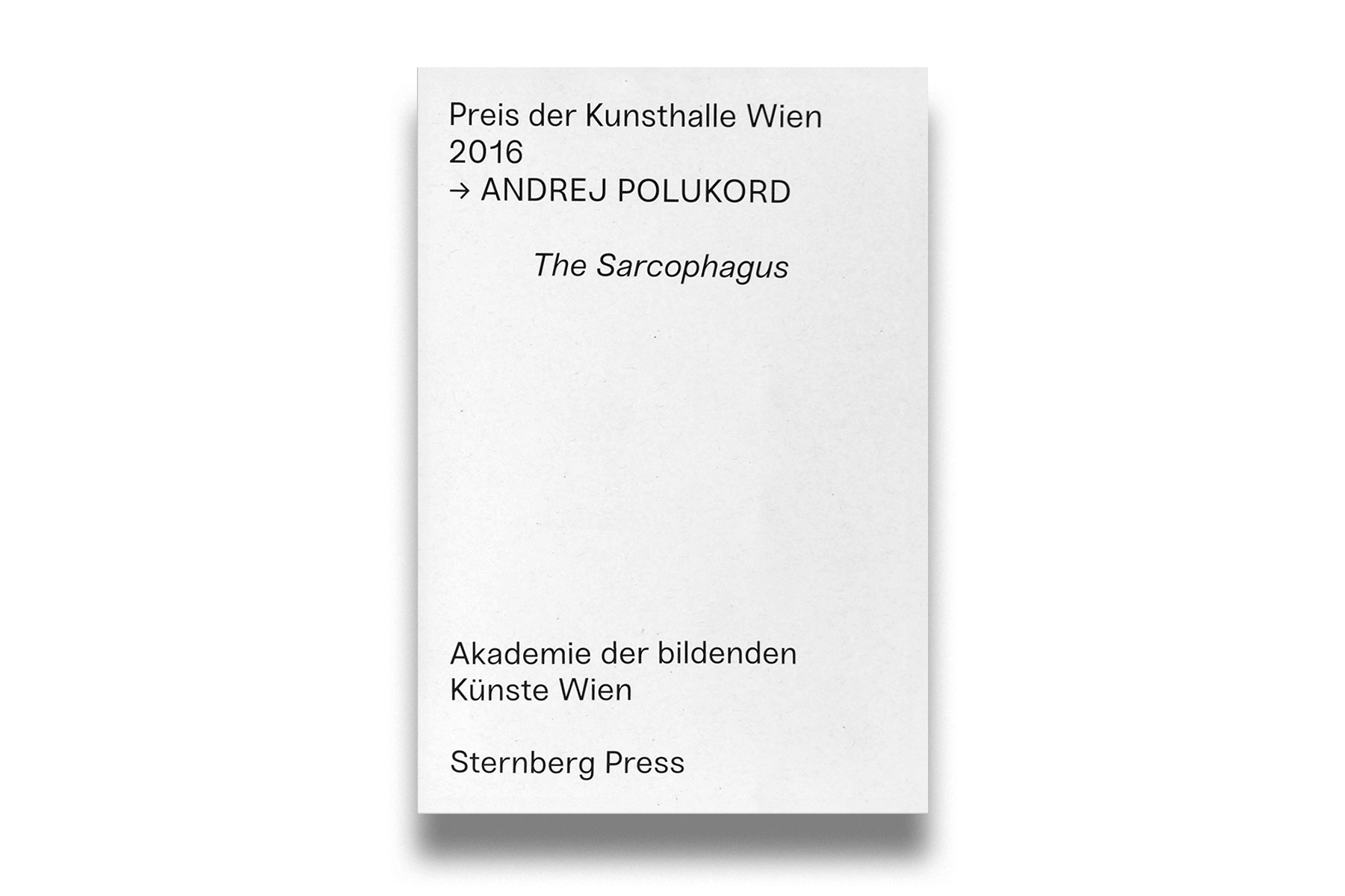Published on the occasion of the Kunsthalle Wien Prize 2017 exhibition by the University of Fine Arts and Kunsthalle Wien. With a foreword by Nicolaus Schafhausen and Eva Blimlinger, a text by Lukas Gehrmann and a conversation between Andrej Polukord, Lukas Gehrmann and Nicolaus Schafhausen.