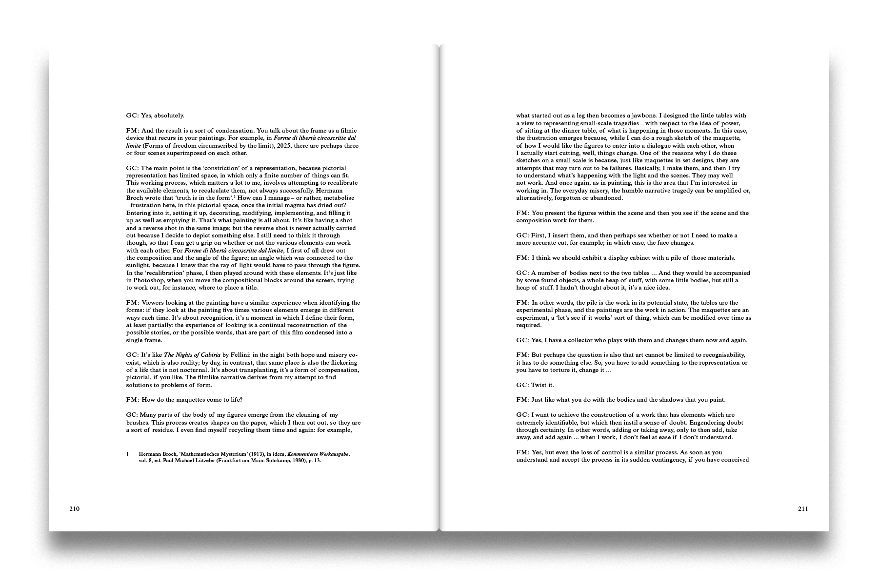 Guglielmo Castelli entwickelte für die Ausstellungen in Turin und Wien ein neues Werkensemble, das Malerei, Collage und Skulptur umfasst und in einer Auswahl seiner Skizzenbücher mündet. Diese Skizzenbücher ermöglichen ein äußerst tiefes Verständnis des Schaffensprozesses und der intimsten Aspekte von Castellis Praxis. Sie sind unschätzbare Aufzeichnungen kreativer Entwicklungswege, die Referenzen aus verschiedenen Orten und Zeiten enthalten, die der Künstler sorgfältig auswählt, um sie dann in sein Werk einfließen zu lassen.